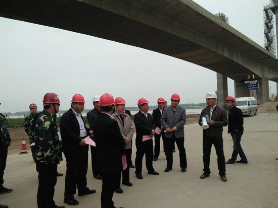 4月11日,省廳副廳長范正金、省公路局局長李洪修到東明大橋改造工程施工現(xiàn)場調(diào)研。調(diào)研組一行實(shí)地察看了G106京廣線東明黃河公路大橋改造工程施工現(xiàn)場。公司派駐項(xiàng)目總監(jiān)周軍在現(xiàn)場向各位領(lǐng)導(dǎo)詳細(xì)介紹了工程進(jìn)展情況,得到各級(jí)領(lǐng)導(dǎo)的認(rèn)可?!?
